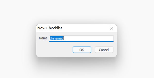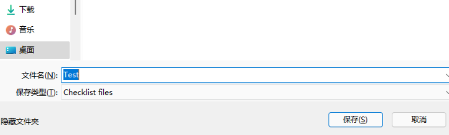 这里需要我们命名,我这里就命名为Test了,大家可以根据自己的情况命名。输入名称,点击OK,然后弹出如下对话框,要求指定checklist文件的存储位置,如下所示: