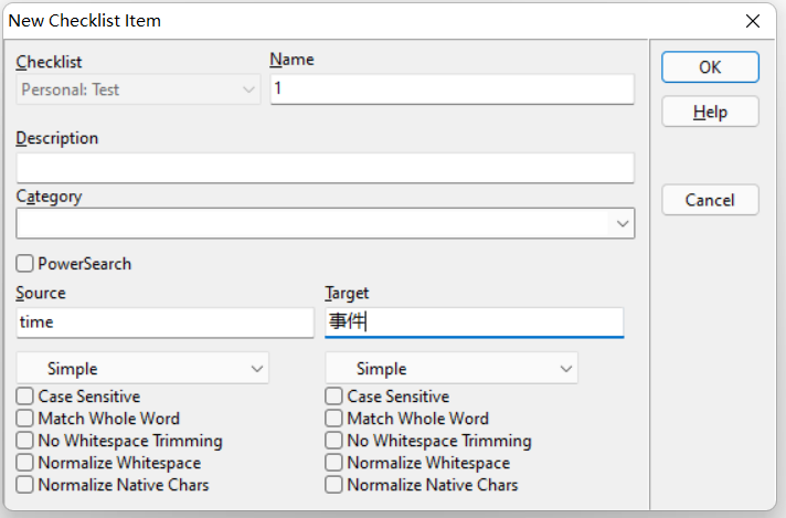 注:也可以在source里不填写任何内容,只在target里面填写自己容易出错的错别字。