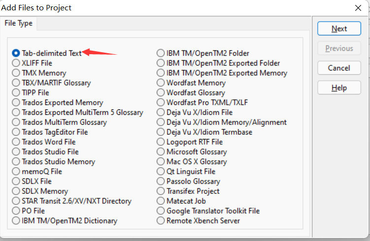 接着点击下方的Add,在弹出的对话框里选择第一个tab-delimited text,如下图所示: