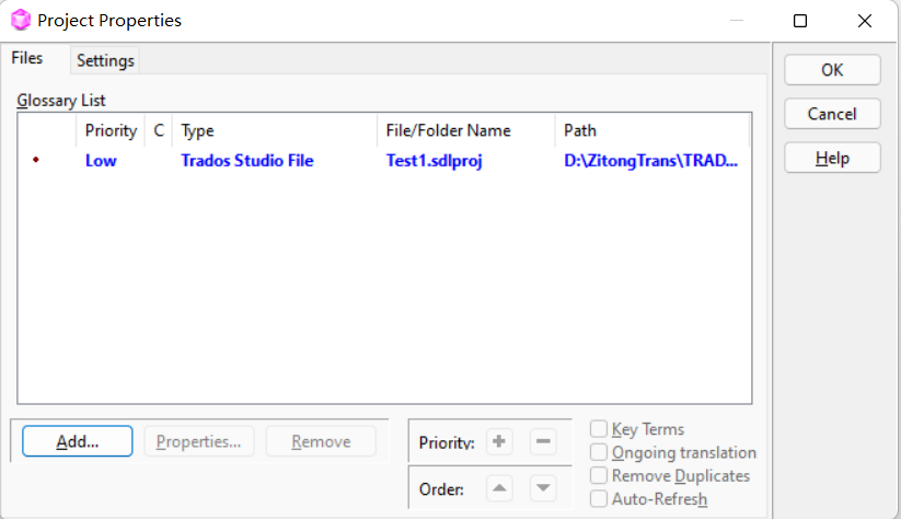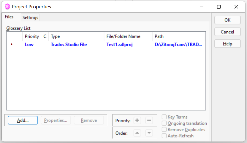 这样就添加了要检查的trados项目文件和术语表,如下图所示,然后点击OK,即可: