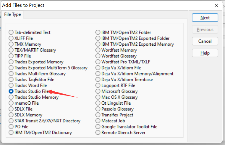 点击Add,弹出如下对话框,这里以trados为例,所以下面点击下图中的箭头位置: