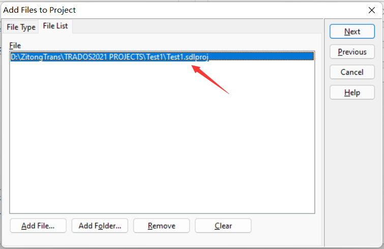 这时点击Add File,找到要检查的trados的项目文件,如下图: